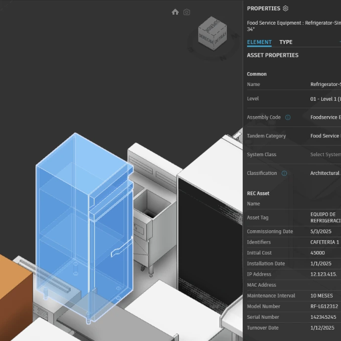 Ajustamos el modelo BIM para que refleje activos reales, equipos, espacios y datos relevantes para mantenimiento.